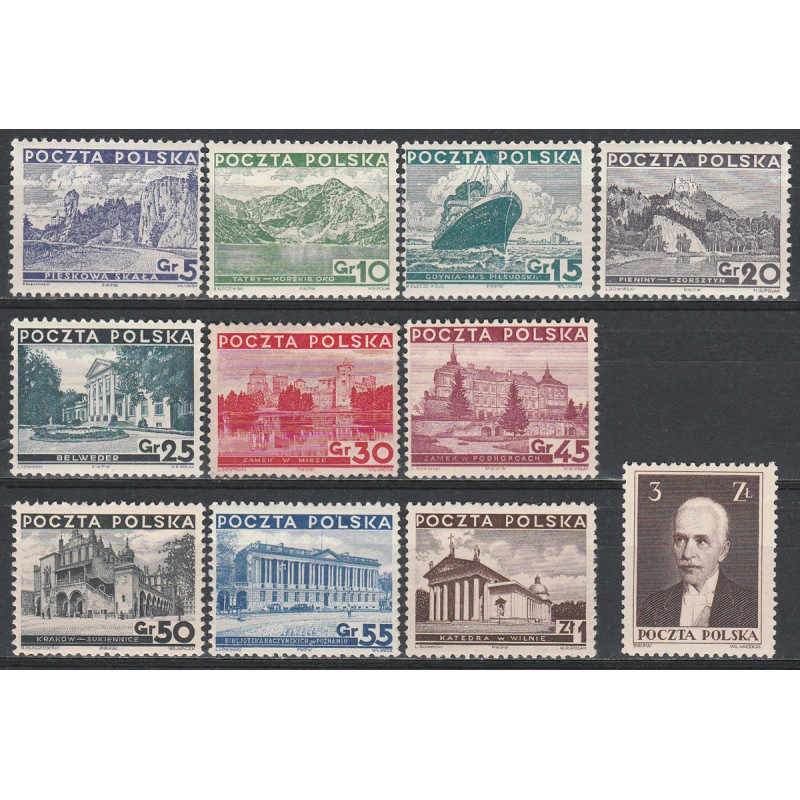 Różne widoki i prezydent RP. Znaczki czyste bez podlepki.