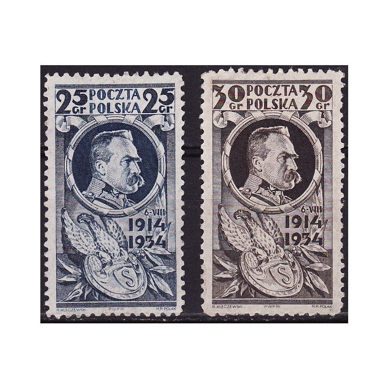 20-lecie wymarszu legionów. Znaczki czyste bez podlepki.