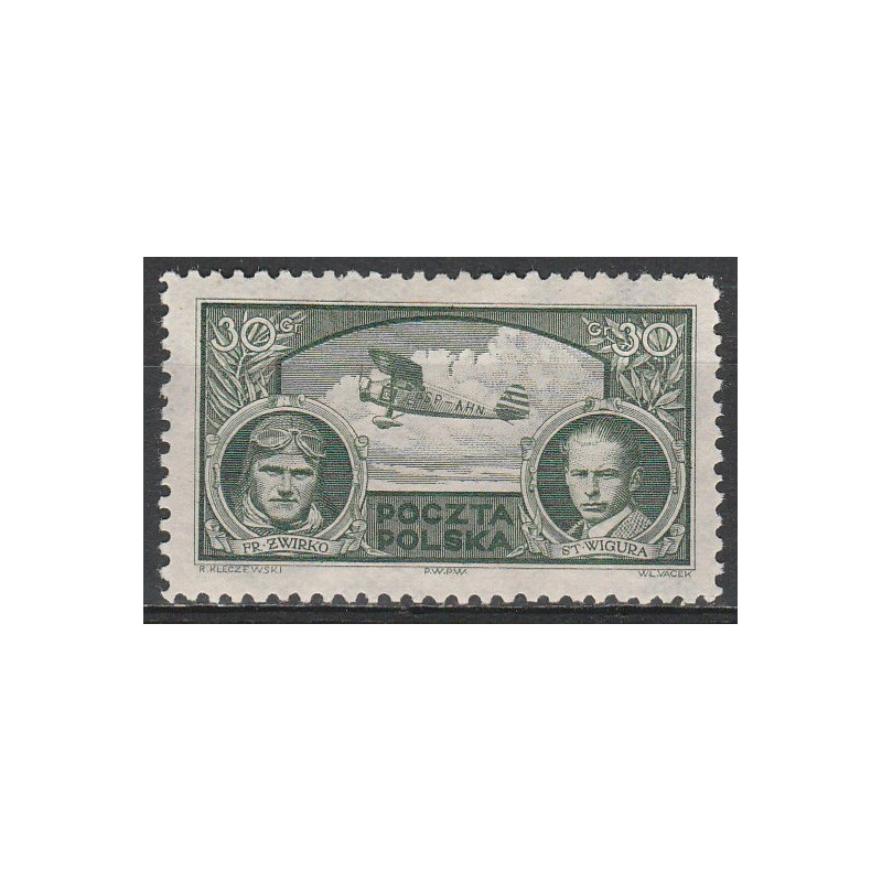 Zwycięzcy Challenge'u - F. Żwirko i S. Wigura. Znaczek czysty z małym śladem po podlepce.