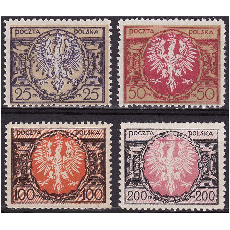 Duży orzeł na tarczy barokowej. Znaczki czyste bez podlepki.