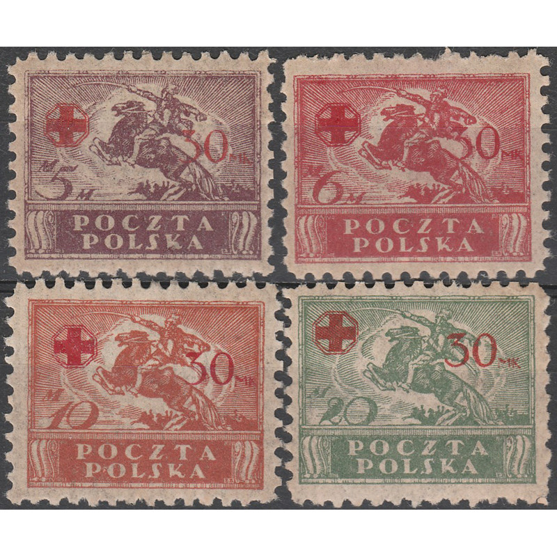Wydanie przedrukowane z dopłatą na Polski Czerwony Krzyż. Znaczki czyste ze śladem po podlepce.