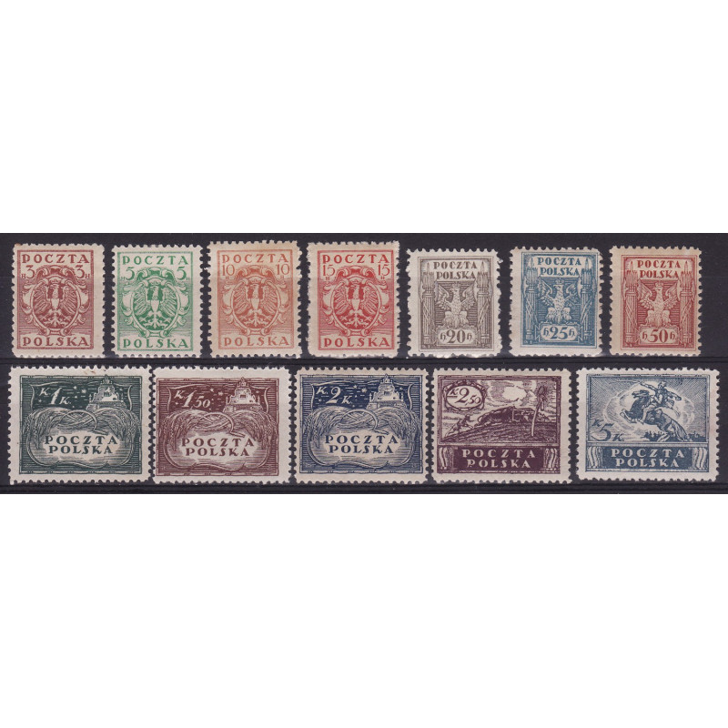 Wydanie w walucie koronowej - różne rysunki. Znaczki czyste ze śladem po podlepce.