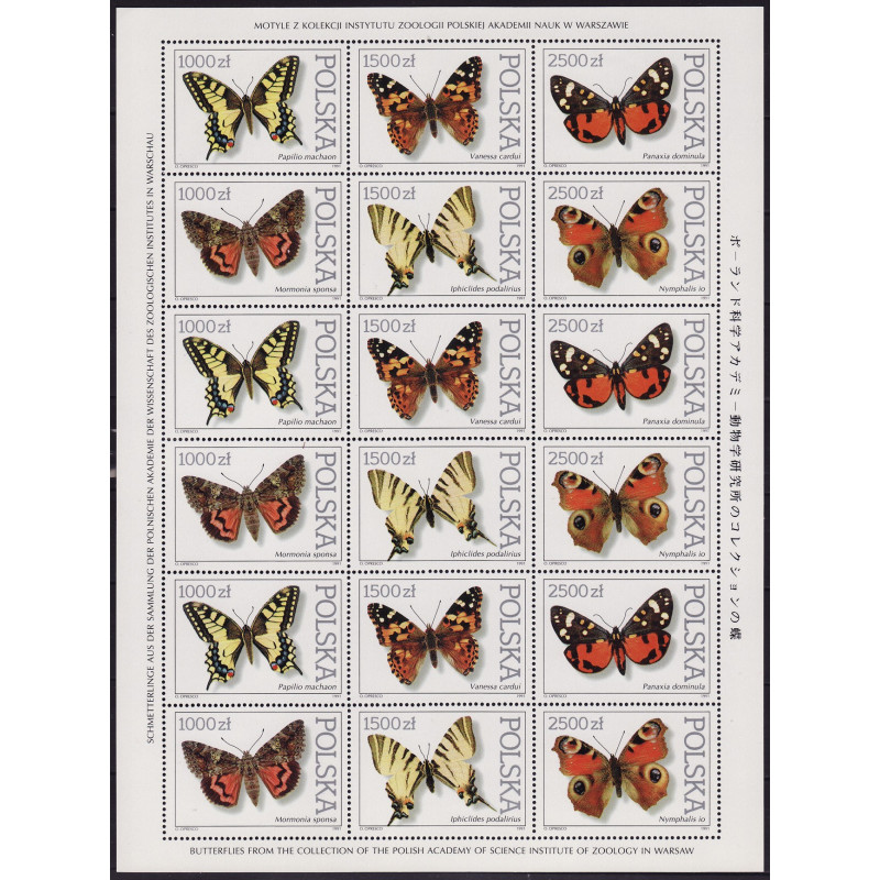 Motyle z kolekcji Instytutu Zoologii PAN w Warszawie. Arkusz czysty bez podlepki.