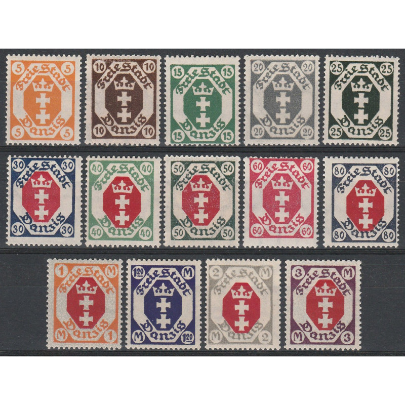 Wydanie obiegowe. Herb Gdańska w ośmiokątnej tarczy. Znaczki czyste bez podlepki.