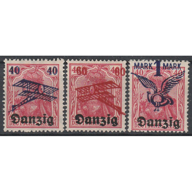 Wydanie prowizoryczne na przesyłki lotnicze, przedrukowane na znaczkach niemieckich. Znaczki czyste bez podlepki.