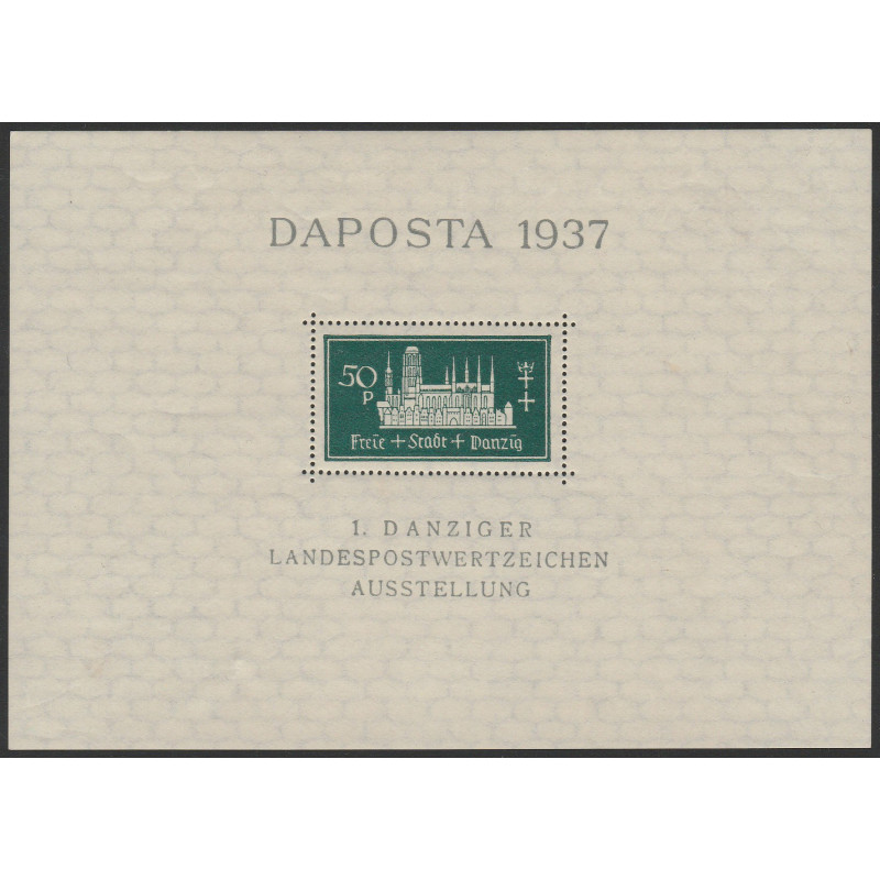 Wystawa Filatelistyczna DAPOSTA 1937. Blok czysty, z pełną gumą, bez śladu podlepki.
