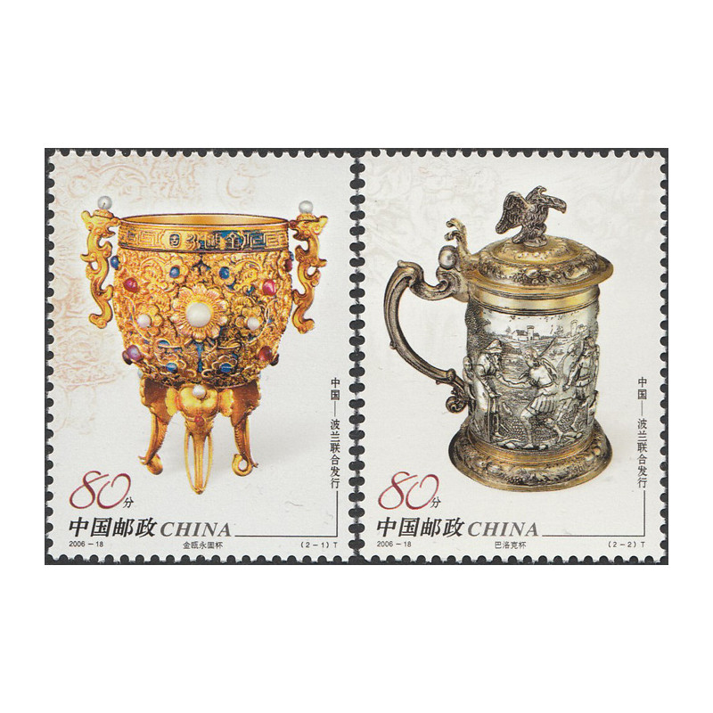 Przedmioty ze srebra i złota - wydanie wspólne z Pocztą Chin. Znaczki czyste bez podlepki.